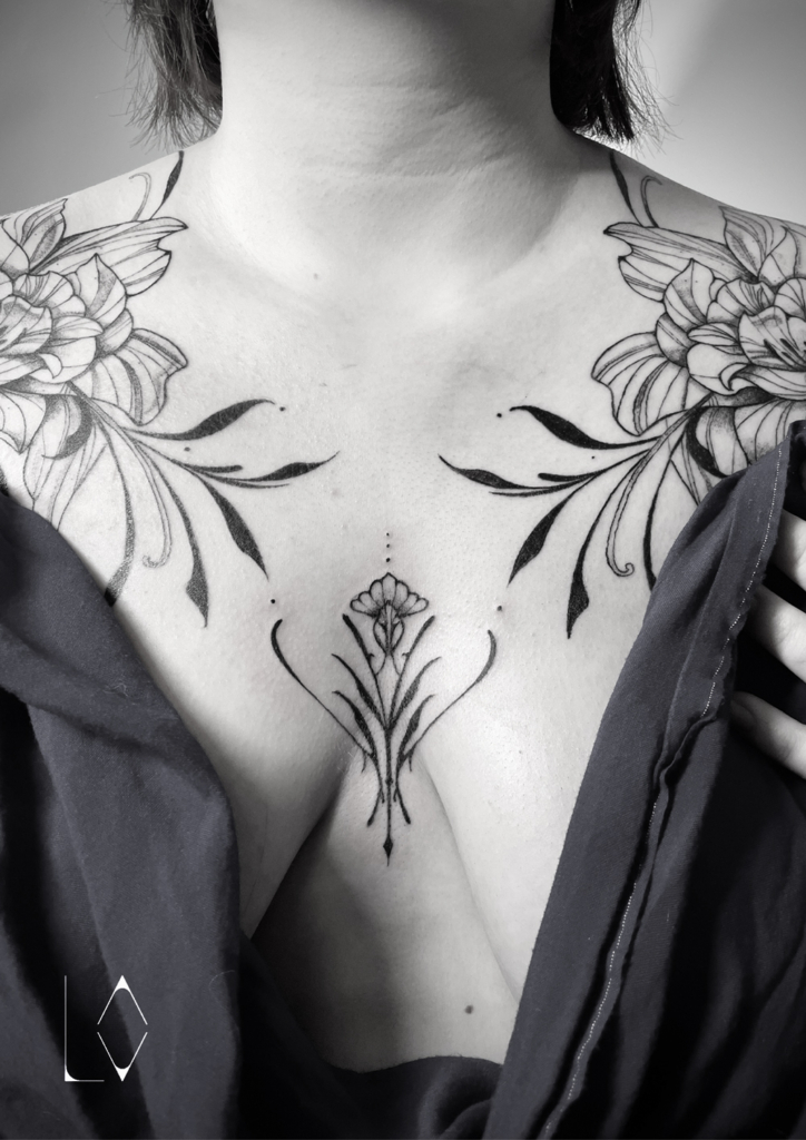 Chaque tatoueur a un style qui lui est propre, une signature graphique qui reflète sa sensibilité et son savoir-faire. Mon travail est guidé par ma passion pour le graphisme, un style que j’ai affiné au fil du temps pour offrir des créations uniques et personnelles influencée par l’art nouveau.