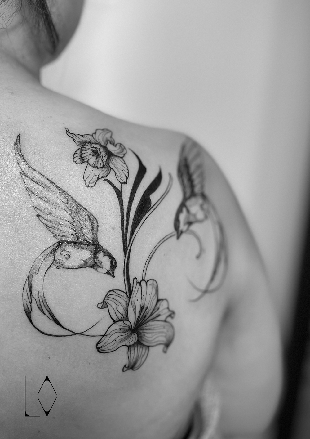 tatouage floral fineline